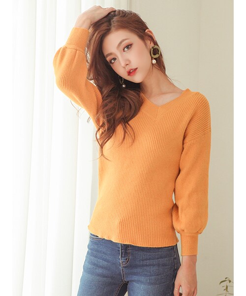 クオリティ抜群!活用度大!のトップス。 秋から冬のデイリールックを様々な演出で 楽しむならこのVネックニットがおすすめ! バルーンスリーブでトレンド感あるデザイン。 アクリル100%素材で仕立てた 薄手のニットTシャツが登場。 トレンディな演出がたのしめる! 活用性高いデイリーアイテムです。