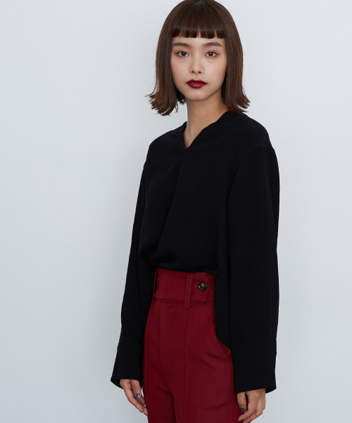 ◆STUDIOUS定番の人気ブラウスが今年らしいデザインで登場◆【Fabric】毎年ご好評で人気のブラウスが今年らしいディテールになって登場。さらっとした着心地と首元の綺麗なカットが◎。きれいめなデザインなのでオフィスカジュアルでも使えます。【Coordinate】オンとオフ両方でお使いいただけるシンプルで着やすいデザインです。オンモードなら、テーパードパンツやストレートめのきれいめコーディネートならオフィスでもお使いいただけます。オフモードなら上からざっくりとしたカーディガンでレディ感をプラスしたり、ワイドパンツや柄のパンツとの着こなしがオススメです。