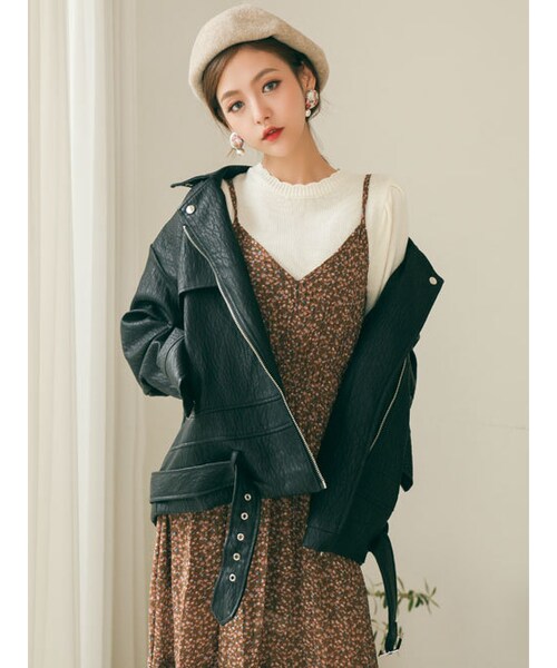 1枚は必ず持っていたいデザインのライダースジャケット。 柔らかいフェイクレザーを使用した、こなれ感のあるアイテムです。 秋シーズンのアウターに 欠かせない一着をご紹介! ワイドパンツやフレアスカートとの相性も抜群です。 ディテールで洗練美高いアイテムです。 オーバーサイズ感がスタイリッシュな雰囲気を完成します!