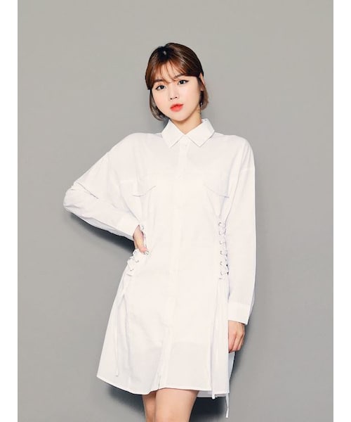 ウエスト両サイドのレースアップで、コルセットのようにウエストを強調し、メリハリのあるボディラインに。ストラップを緩めて着ても◎柔らかいコットン100%素材を使用し、着心地もGOOD!バストのビックポケットがポイントに。一枚でも、レイヤードしてもおしゃれなコーデに仕上がります。