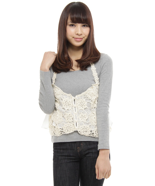 ☆DRitte☆ かぎ編みレースを重ねたホルターネックキャミソール。この季節はタートルネックニットやなどと重ねたコーディネートがオススメです☆Tシャツやブラウスに重ねてもカワイイので1年中使えるアイテム!アクセサリー感覚でコーディネートのアクセントとして活躍してくれそう♪ model:angie(Image)H168 B83 W60 H85