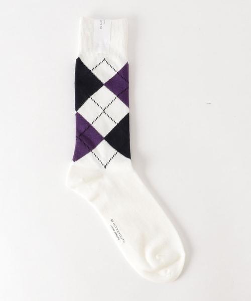 アーガイル柄をあしらったソックスです。 ベーシックなカラーリングにアーガイルチェックのアクセントカラーが絶妙なアクセントを効かせたデザインとなっています。 足もとからさりげなく覗かせて、シーズンスタイルのワンポイント使いとしておすすめです。 店舗へお問い合わせの際は、全国のBEAUTY & YOUTH 各店舗まで下記の品名/品番をお申し付け下さい。 品名:BST ARGYLE REG 品番:1435-606-1566