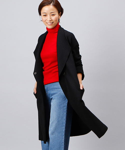 リング糸を使用し表情ある素材のコートです☆ややオーバーなシルエットで今季らしいシルエットにしつつ、女性らしさのある着易いサイズ感にしています。大きめのラペルカラーで柔らかな雰囲気に仕上げ丈も長すぎないのでパンツ・スカート共に合わせ易いコートです☆