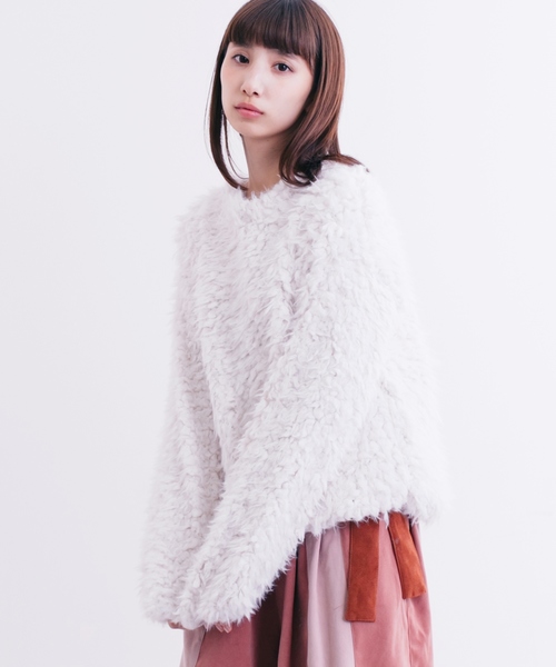 フワフワ感が可愛いフェイクファープルオーバー。 定番コーデに1点加えるだけで可愛さをプラスしてくれるデザインニットです。 ワイドパンツやスカートなどどんなボトムスとも合います◎