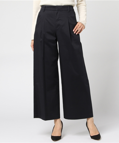 ワードローブに抑えておきたいシンプルなワイドパンツです。太すぎないシルエットで、ブラウスやセーターなどどんなトップスでも合わせやすいのがポイント。デイリー使いはもちろんのこと、ビジネスシーンでもヘビロテ間違いなしです。