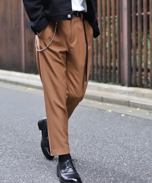『WARMストレッチテーパードスラックス』 LIDnM定番の"2WAYストレッチアンクルスラックス"が秋冬素材でリリース!! 腰周りに程よいゆとりを入れ、裾に向かってテーパードを効かせた至極のシルエット。 ウェストの後ろ側にはゴムを入れたイージー仕様。 さらにアンクルカットのため、革靴からスニーカーまで幅広いスタイリングに合わせられるアイテムです。 【素材】 ポリエステル63%、レーヨン33%、ポリウレタン4% タテ糸とヨコ糸の両糸にポリウレタンを混紡した2WAYストレッチの効いた抜群の履き心地。 また表面に微起毛をかけている為、暖かみがありこれからのシーズンにぴったしな素材感です。 【原産地】 日本(福井県) 【サイズスペック】 ウエスト S:73cm M:77cm L:81cm 股上 S:26.5cm M:27.5cm L:28.5cm 股下 S:62cm M:63cm L:64cm ワタリ S:31cm M:32cm L:33cm 裾幅 S:16.5cm M:17cm L:17.5cm (げんじ:175cm/着用サイズ:S) LIDnM contributes to revitalize the domestic apparel industry by producing all the items in japan. “What do you want meaning for ? Life Is Desire, not Meaning.”