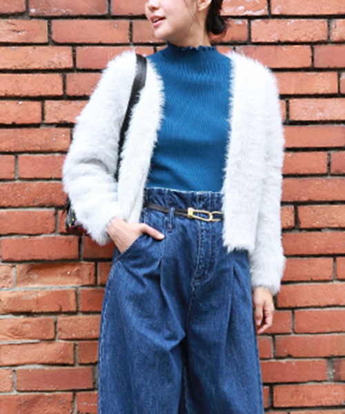 ふわふわのフェザーが着心地良い包まれているようなカーディガン♪少しルーズにゆるっと着崩してこなれ感あるコーディネートの完成◎カジュアルにも大人スタイルにも使えるカラー展開です。