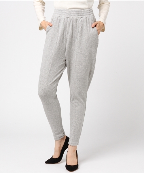 シンプルでリラックス感のあるスウェットパンツ。シルエットは細身になっているので、カジュアルな中にも女性らしさが出せる一枚。今季はスウェットトップスとのセットアップでスタイリングし、太めのベルトでウェストマークして着るのがオススメ。