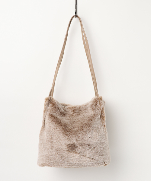 光の当たり具合によって表面変化のあるスノーエコファーを使ったトートバッグです。 フェイクとわ思えない優しいタッチで、ついつい触りたくなってしまう風合いの良さ! 細いコードの持ち手で、カジュアルの中にも上品さが加わったバッグです。