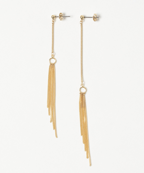 両耳の長さが異なるデザインのピアスです。毎年人気のあるタッセルモチーフのピアスは 動く度に揺れて、耳元が女性らしく さらには小顔効果大で嬉しいですね♪