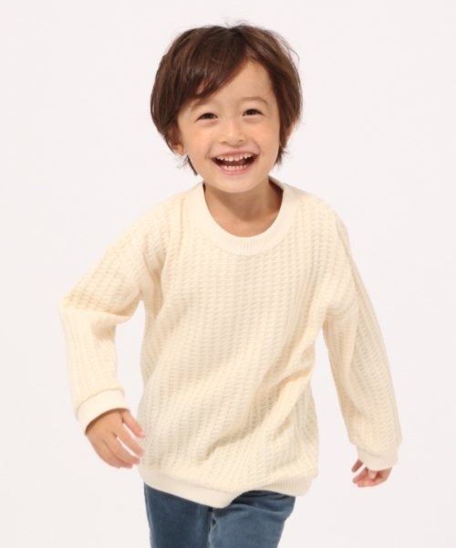 トレンドワッフル地カットソー メンズでも人気のワッフル素材のアイテムがキッズでも登場! 表面が格子状のような凹凸模様があり、生地感に特徴があるのでそれだけでアクセントになるアイテム。 男女兼用でお使いいただけ、カラーにより雰囲気も異なるので色違いでもおすすめです☆