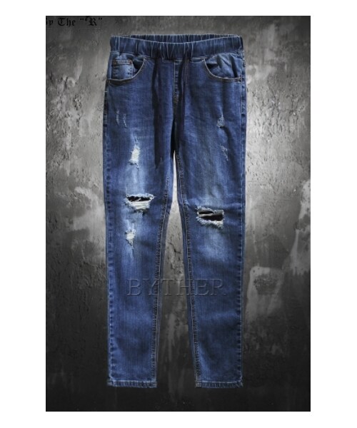 スタイリッシュなデイリーコーデをストレスフリーな着心地で叶えるデニムパンツ。 ウエストゴムにストレッチデニム素材の着心地にこだわったアイテム。 ハードなダメージとウォッシュデザインがクールなスタイリングを可能にします。 カジュアル定番のデニムアイテム、シンプルなTシャツとラフに着こなすのもトレンディに決まります。