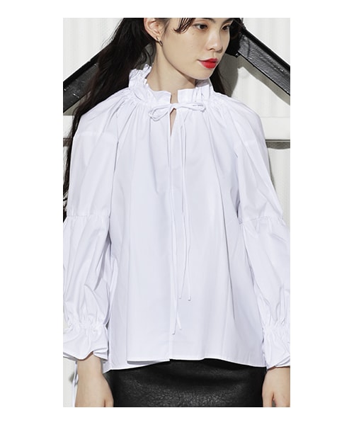 ロマンチックなギャザーフリルロングスリーブシャツの登場! サッシュベルトとの相性も抜群!! コーデの幅が広がります。 襟ぐりと袖元のギャザーフリルは紐で調整可能◎ カラーは、ホワイト、ブラックとグレーの3色をご用意!