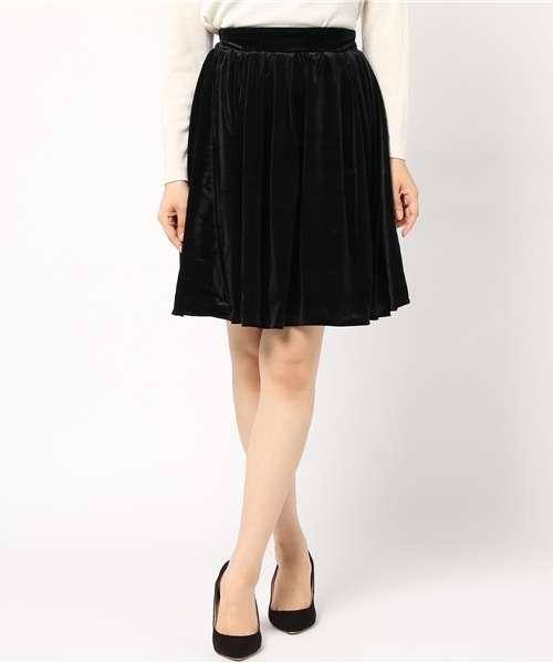 今季らしいベロア素材のスカートが登場!とろみと光沢感で膝丈レングスがさらに大人っぽい着こなしに。リブトップスを合わせてレディライクに、ブルゾン合わせでストリートミックスに着こなすのもオススメ♪洗濯:手洗い可
