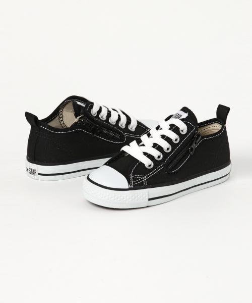 持ち手の大きいファスナーに、つまみやすい広めの踵テープで脱ぎ履きしやすい仕様のキッズスニーカー。 しなやかなラバーに、踵部分にはボードを内蔵し、足の曲がる位置でしっかり屈曲するソール設計で、 カップインソールにはサイズ変更の目安が分かるフィッティングチェッカー付き。 親子ペアでもおすすめできるコンバースが誇る永遠の定番アイテムです。