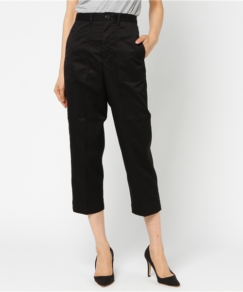 センタープレスを入れたスマートなフォルムがレッグラインを綺麗に見せてくれる美人パンツ。カジュアル感のあるベイカーパンツも、ラフすぎないすっきりとしたマニッシュライクな着こなしに◎シンプルなワンカラーのルックスで着回し力も高く、デイリーに幅広く活躍してくれるアイテムです。