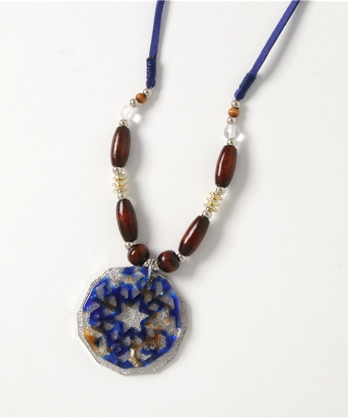 雪の結晶をイメージしたモチーフとメタルプレートが重なる上品なデザイン。艶感のある樹脂を使用したロングネックレス。合皮のネックレスコードにはウッドビーズが付いていますので、お好みの長さにサイズ調節が可能です。冬コーデにぴったりな可愛らしいデザイン★ ※こちらの商品は1点1点職人による手作りとなります。その為、形や色合いなど若干異なる場合がございます。あらかじめご了承ください。 Amina Collection Co.,LTD.