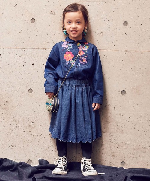 柔らかい起毛デニム素材を使用しており、肌触りが良くあたたかみのあるスカート!スカート裾のレース刺繍が魅力的♪