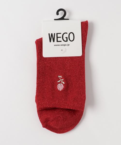 全体にラメを混ぜ込んだソックス。ワンポイントのバラ刺繍デザインが手軽にアクセントになります。 クウォーター丈の程よい長さのソックスはパンプスやフラットシューズと合わせたり、ロ-ルアップしてチラリと覗かせる様な着こなしもオススメ。 お値段も手頃ですので、ご自身用は勿論、プレゼントにもオススメです。