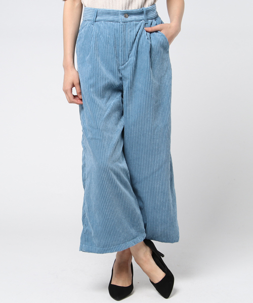 シーズンムードたっぷり。あたたかみのあるコーデュロイ生地のワイドパンツ。股上深めのデザインで今年らしい着こなしが叶います。ベージュ・ブラックの定番カラーと個性が出るダスティカラーのカラバリ。※後ウエスト部分ゴム●裏地/あり※前中心ファスナー開き地/あり洗濯:洗濯機使用可(ネット使用)お問い合わせ番号:537-73-9479(店舗)