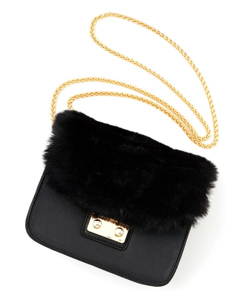 ふわふわのファーをフラップにあしらったデザインに乙女心くすぐられるショルダーバッグ♪ ゴールドのチェーンでリッチな雰囲気をプラス♂ コーディネートの邪魔をしないサイズ感で、マルチに活躍◎ ★外ポケット:オープンポケット1個付き ★内ポケット:ファスナーポケット1個・オープンポケット1個付き