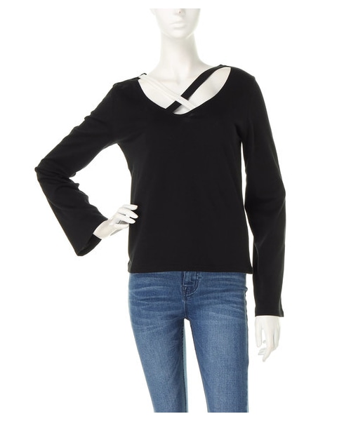 クロス仕様のネックストラップがモダンな個性を放つ長袖トップス♪女性らしいヌケのある肌見せをより印象的に魅せてくれる1枚◎ほど良くフィト感のあるシルエットで、メリハリの効いた美スタイルへと導いてくれるのも嬉しいところ★