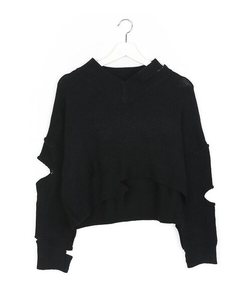 ヴィンテージライクなニットトップスをご紹介します。 クロップ丈で、他のトップスとのレイヤードコーデがオススメです。 個性派アイテムながらもコーデしやすい単色です。 カジュアルなスタイリングを叶えてくれます。