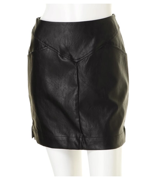 ウエストラインの切り替えが腰まわりをスッキリと見せて、メリハリの効いた美スタイルを後押し!バックのみゴム仕様にすることで、フィット感もよくリラックスして着こなせる合皮使いの大人レディな台形スカートが登場★スリットを入れることで足さばきも良く、切替えを活かしたフロントサイドのポケットも実用的な好ディテールです◎