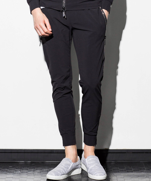 ポケット内側をカモフラージュ柄に切り替えた、ラインストーン付ファスナーが特徴的なジョガーパンツ。4方向に伸びる4WAYストレッチナイロンの抜群の着心地の良さがポイントです。程良くレッグラインにフィットするコンパクトなサイジングで、トップスを選ばない細身シルエットが着回し力◎同デザインのラインストーンZIPフードパーカとセットアップスタイルがおすすめです。AKM エイケイエム最高の贅沢を知る男の「至高のリアルクローズ」 目指すのは国内ラグジュアリーウエアのパイオニア。 妥協することなく厳選された素材と美しさを追求した独自のシルエットパターンが作り出す作品の数々は、知性漂う魅惑の香りと暇を楽しむ艶のある男に華を咲かせる。 着て初めてわかるその力強さと存在感、美しさ、上質感から多くのファッショニスタや著名人から圧倒的な支持を受けている。この商品は株式会社AKM監修の元で生産販売[製造販売]されたコンテンポラリーラインになります。