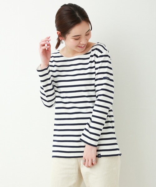 永遠の定番☆★☆長袖ボーダーがリニューアル!! 大好評の長袖ボーダーがリニューアルしサイズ展開も増えて登場しました。 薄すぎず、厚すぎず、のボーダーは秋に1枚は欲しい定番中の定番です。 サイズ展開M・Lの販売から、Sサイズも追加になり、 七分袖同様、より、お買い求めやすくなりました! 色展開は、ホワイト×ネイビー、グレー×ホワイト、ネイビー×ホワイトのベーシックな定番色に加えて、 マスタード×ホワイトと、大人可愛いお色も♪ ボートネックが、スッキリとした襟元を演出してくれます。 また、脇スリットにある、赤いステッチも、さり気なく可愛い演出をしてくれます♪