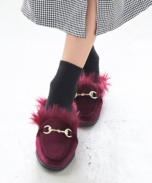 大人気ファーバブーシュが今年も登場。スクエアトゥやボリューミーなファー等トレンドがたっぷり詰まった一足。【素材・サイズ感】S~LLの4サイズ展開に素材も豊富な4色展開。【スタイリング】綺麗めスタイルにはもちろん、ワイドパンツ等のラフなスタイルに合わせるのもおすすめです。甲に施したビット金具がトレンドのトラッドスタイルに相性抜群。ファーが靴下やタイツにも映えて秋から冬まで長く履いて頂けます◎※柄生地は、総柄の為柄の見え方が一点一点異なります。