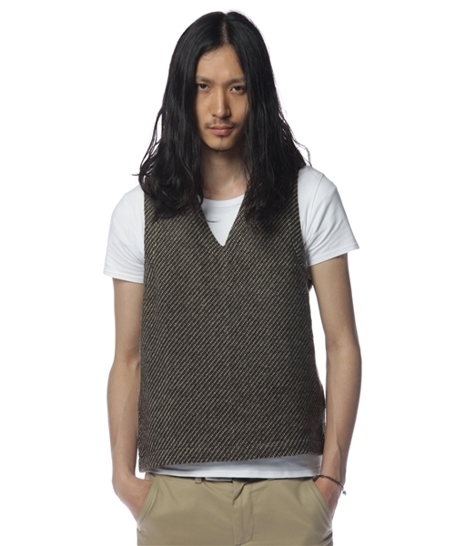 FRANK LEDER。1974年9月25日ドイツ生まれ。 2000年にロンドンのセントマーチン美術学校卒業。 2001年の春夏コレクションは路上ゲリラショーを行い注目を浴びる。ドイツ人である彼の中にはドイツの歴史や町、人々からくるインスピレーションがコレクションのベースに影響している。彼は着飾るための服ではなく、すべてに意味があるディテールを備えたコレクションであることを重視し、着心地が良く、その上独自的・独創的なデザインであることを理想としている。 今回入荷したアイテムは、独特の素材感とシンプルなデザインが特徴のベスト。シルエットはすっきりとしており、コーディネートのワンポイントアクセントとして最適です。ドイツ製。 品番:74254990734 model:H178 B85 W70 H88 着用サイズ:MEDIUM