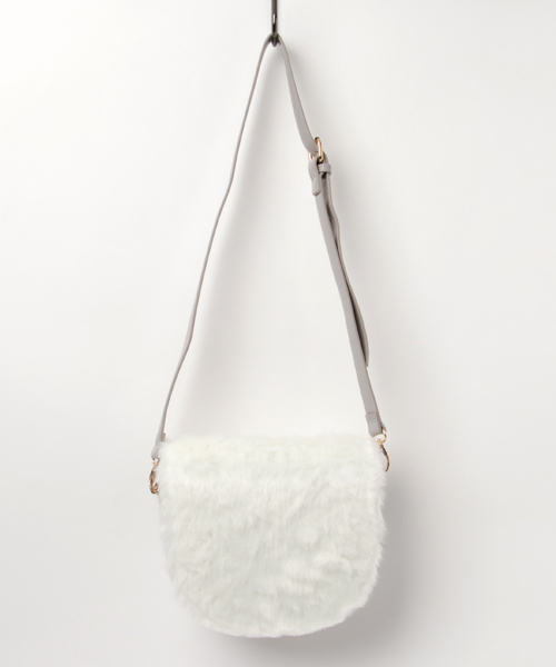 半月型のショルダーバッグです。 リングモチーフと冬らしいフラップが2種類使えるのがポイント! マチがあるので見た目よりも容量が入ります。 スタイリングのカジュアルダウンアイテムとして取り入れて◎