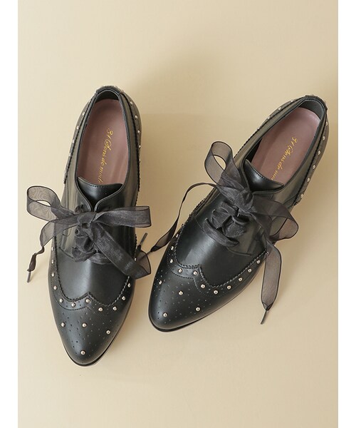 レースアップシューズにスタッズをつけたデザインがハンサム見えする一足。