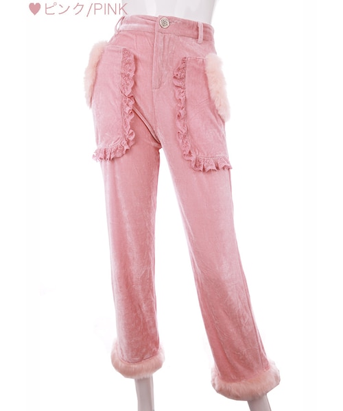 ♡Bobon21 2017Autumn New Collection♡ スウィートなベロアファーパンツ ポケットと裾にファーをあしらい ポケットの周りにはさらにレースをプラス ウエスト部は楽チンなシャーリング仕様 可愛い上に履き心地も良い 手触りがアンゴラ風のフェイクファーを使用 ふんわり軽やかに広がり柔かいSweetな雰囲気に ベロア素材でトレンドのあるコーデに カラーはピンク・白・黒の3色展開 セットアップできるトップスともあるので セットアップコーデがおすすめだよ