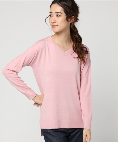 ゆったりシルエットがエアリー感をプラスし、女性らしいヌケ感も手に入る一着。【素材・サイズ感】柔らかいニット素材でしっとりとした肌触り。ドロップショルダーに広くとった身幅でリラックスした着心地が魅力。【スタイリング】ネックラインはVネック/タートルネックの2TYPE。コーデに合わせて選べるシンプルニットは色ち買いしたいマストハブアイテム。