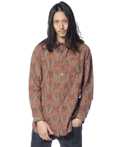 耳付のネル地にオリジナルのペイズリー風プリントを施した<Sanca>のロングネルシャツ。着丈が通常のシャツよりも10センチ強長く仕上げました。チンストラップ付のミニレギュラーカラー、フロントの下半分は比翼仕立てになっているなど、細部のディテールにも手を抜きません。個性的な柄なのでコーディネートの主役として活躍してくれます。 【 Sanca 】 2007年に誕生したジャパンブランド『Sanca(サンカ)』。明確なブランドコンセプトはあえて設定していないが、柱となる部分は「Made in JAPAN」、「古いものと新しいものとの融合」、「自分が着たい服」の3つ。「Made in JAPAN」のこだわりは、デザイナー自身が10代の頃に「Made in U.S.A.」に憧れを抱いていたことと同じくらい、現在は「Made in JAPAN」の完成度の高さに敬意を抱いている。 原産国: 日本 model:H178 B85 W70 H88 着用サイズ:3 店舗へお問い合わせの際は下記品番をお伝えください。品番:11-11-1172-674