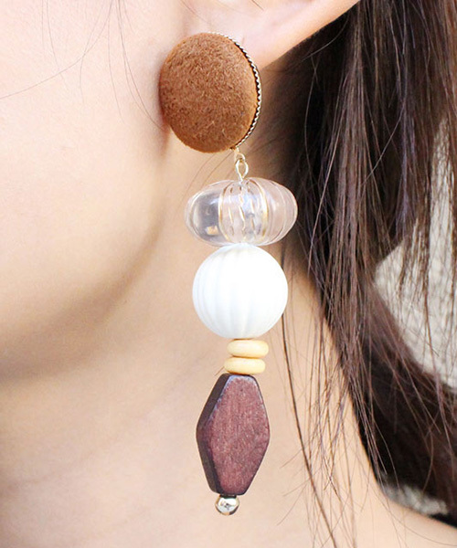 秋冬にピッタリのスウェードボタンにパーツがついたボリュームピアス♪※無理な力が加わったり、水気や湿気が原因で破損する恐れがございますので、お取り扱いには十分ご注意下さい。