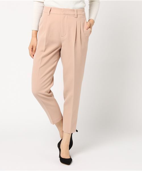 大人の女性らしさを醸し出す、タックが入りパンツです。丈は足首が見えスッキリした印象で、ウエスト周りの後ろはゴム仕様なので動きやすく履き心地も抜群。 きゅっと細くみせ、ヒップラインをカバーし美スタイルを叶えてくれます。 脚長効果にも期待でき、全体をバランス良くまとめてくれる一枚に仕上げました。