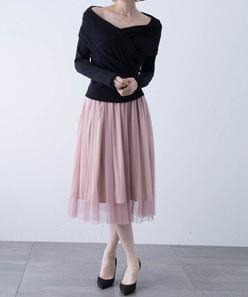 【aquagirl / アクアガール】コーデいらずのデザインニットとチュールスカートのセットアップ! STUDIOUSだけでしか買うことができないLIMITED ITEM アクアガールのニットxチュールスカートのセットアップ。 ■トップス■春先に華やかな雰囲気のデザインニット ニットは女性らしいムード満点のカシュクール風デザインになっており、デコルテを美しく見せてくれます。 身頃はリブになっており体に沿いながらも伸縮性があります。 ■ボトムス■結婚式からデイリーにまで使えるチュールスカート 春先にピッタリのエアリーなチュールスカートは、程よいボリューム。 ウェストはゴムなのでストレスなくご着用頂けます。 結婚式やちょっとしたお呼ばれパーティには、セットアップでも素敵。 デイリー使いであれば、トップスをTシャツやパーカーなど敢えてカジュアルに外してあげるのがお勧めです。 セットなのでコーデに悩まずご着用頂けますが、 もちろんそれぞれ単品でもお使い頂けるので ニットはデニムやトレンドのワイドパンツと合わせたり、 スカートはデザインブラウス等と合わせたコーディネートもおススメです。 カラーは大人のかわいらしさを追求したブラックxピンク、ピンクベージュxブラック、ブラウンxカーキの3色展開です。 【aquagirl(アクアガール)】 どんなスタイルが流行ろうとも“女らしく”モードを提案したい、それが「アクアガール」の基本理念。そして、年齢に関係なくピュアな気持ちを持ち続け、自分に素直なスタイルを持っている女性に着てもらいたい…その象徴として「アクアガール」の名前があります。その時々の流行はしっかり意識しつつも、女性なら誰もが持ちあわせている甘さを大切にしたラインナップです。