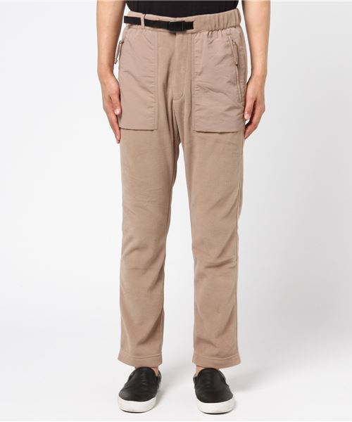 リサイクルポリエステル素材"POLARTECR MICRO"のパンツ。軽量で暖かく、肌触りの良いマイクロフリースを使用しているのでリラックス感のある履き心地ですが、細身のシルエットで見た目はスッキリ。ポケットにはファスナーやスナップボタンが付くので中身の落下を防げます。