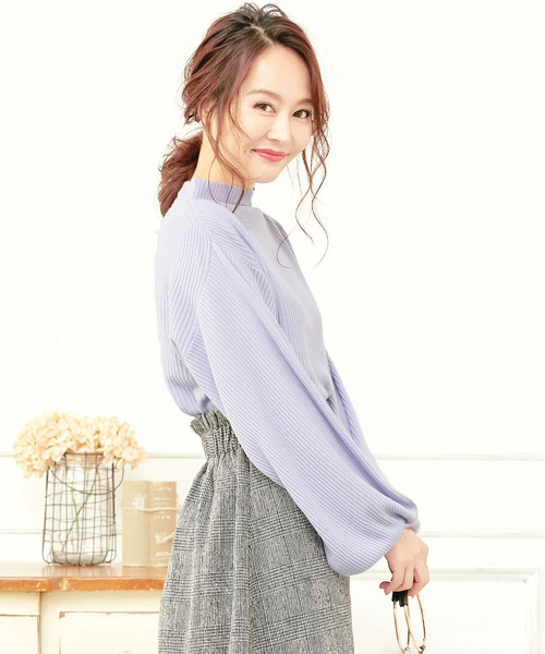 春の新色登場!トレンドのバルーンスリーブが女性らしさを引き出してくれるリブニット。ハイネックorVネックの2タイプから選べるのが魅力的なアイテムです。 【素材・サイズ感】 やや起毛感のあるミドルゲージ細リブニット。ゆったりとしたシルエットで、気になる体型もカバーしてくれます。 【スタイリング】 キャスケットやワイドパンツを合わせた大人カジュアルな着こなしはもちろん、パンプスやフレアスカートを合わせた大人フェミニンなスタイルも◎