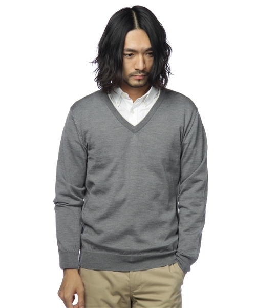 首元に白のラインを施したVネックニット。スーパーファインメリノウールのを使用し、非常に綺麗な編地に仕上げました。衿裏のマルチボーダーもポイントです!中国製 model:H180 B83 W68 H88 着用サイズ:MEDIUM 店舗にてお問い合わせの際は、下記の品番をお申し付け下さい。 品名:BY 12GG LINE VN 品番:1213-105-0480