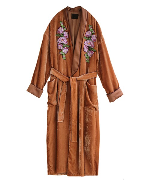 インパクトのあるフラワーのベルベットガウン