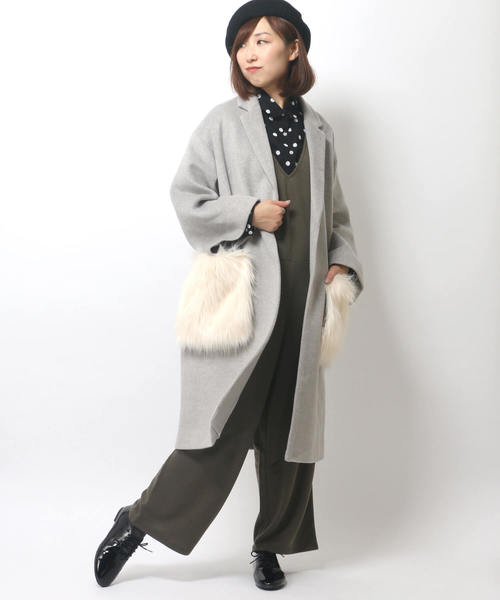 ふわふわリッチなボリュームが今っぽい、フェイクファーポケット付きのコートです。手がすっぽり入るボリュームは思わず触りたくなる心地よさ。スナップボタンで取り外しができるので、その日の装いに合わせてアレンジができる2WAY仕立てです。大きめシルエットはインに厚手のニットなどを着ても窮屈感なく着て頂けますよ♪