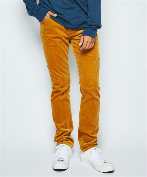 『シンプルながらもレトロな色合いがオシャレなスリムパンツ』 スリムストレートシルエットの5PKディティールパンツです。 センタープレス入りなのでドレッシーに着て頂けます。 素材には長綿のコンパクト糸を使用した9ウェル畝の綿コーデュロイを使用。 ソフトな風合いと、秋冬に最適なウォーム感、長綿を使用することで上品な美光沢があり、高級感のある仕上がりになっています。