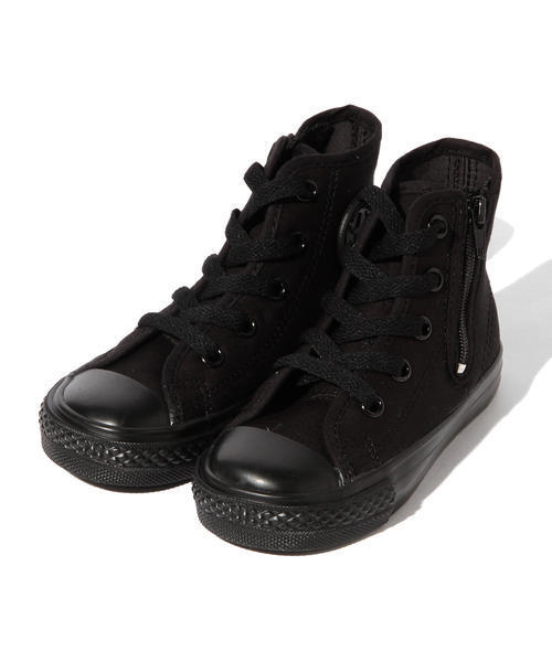 定番のオールスターにブラック×ブラックモデルが登場♪ 抗菌カップインソール、立体成型ヒールパッチ、直線ファスナーに改良。履き易さ、履かせ易さをアップデート成型ヒールパッチ・YKKファスナーに改良、軽量化され履き易さ履かせ易さをアップデートされています。 Tシャツにデニムパンツやスカートに合わせるだけで、明るいカジュアルなスタイルに。どんなシーンにも合う大人顔負け&大定番の「CONVERSE」、ぜひオススメです。 CONVERSE / コンバース 1908年アメリカ(マサセッツ州)でスタート。今もなお、世界的に定番スニーカーとしての不動の人気を誇ります。 【対象年齢:およそ2歳~10歳】 店舗へお問い合わせの際は下記品番をお伝えください。 品番:55-31-0105-228