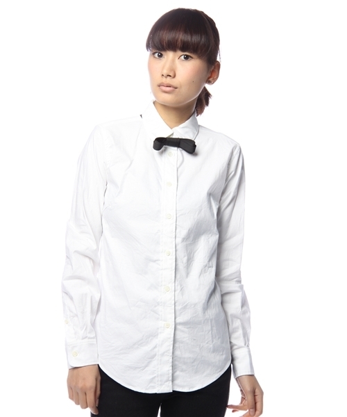 リボンタイ付きオックスボタンダウンシャツ☆ シワになりにくく丈夫なオックス素材のベーシックなボタンダウンシャツ。 着まわしの利くベーシックなシャツも、フロントに取り外し可能なタイを付けて遊び心とトレンドをプラス。 さらに、袖口にはロールアップした時にちらりと見える、シルバーのパイピングを施し、さりげないオシャレを演出しました! しっかりした素材ながらも、ポリウレタンが入っている事でプラスされた適度なストレッチが着心地の良さも実現♪ トラッドなジャケットや、カーディガンやニットのインナー等、コーディネートに欠かせない一枚になってくれます。 日本製:56112990125 model:H166 B78 W58 H88 着用サイズ:フリー