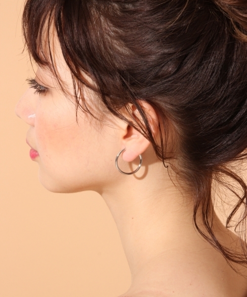 ハードになりがちな太めのフープイヤリングは、 小さめのサイズ感ならカジュアルになりすぎずにお使いいただけます♪ アップヘアーでさりげなくアピールするのがおススメ★