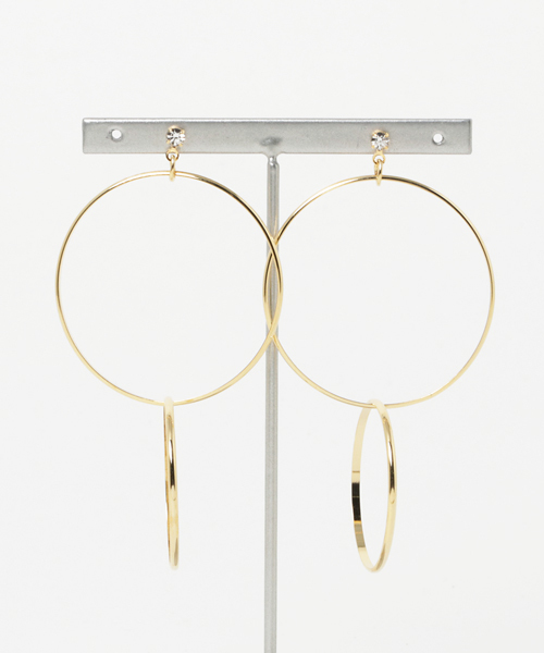 シンプルなサークルデザインのピアス。どんなスタイリングにもマッチしてくれるデザインで重宝すること間違いなし♪
